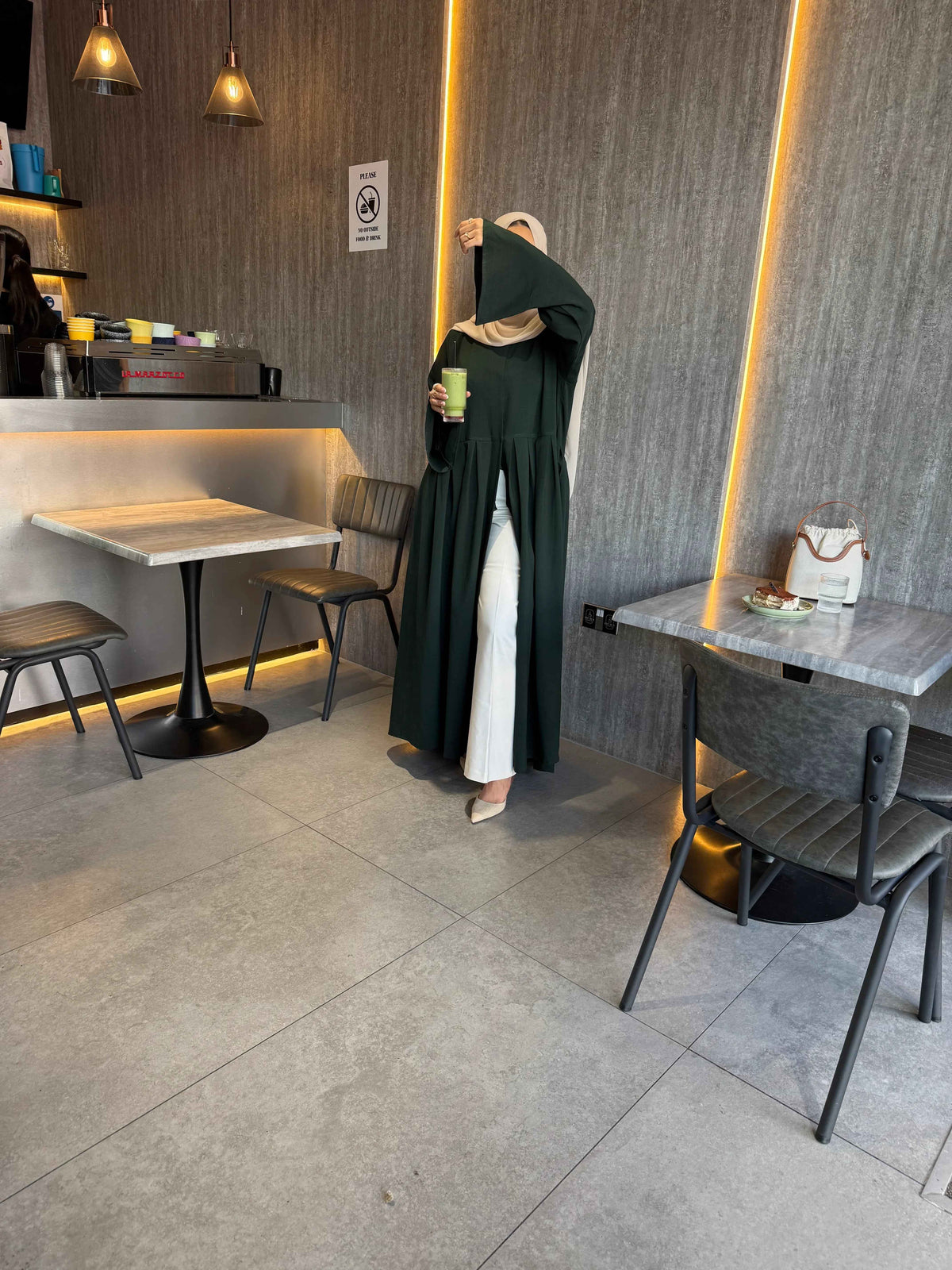 Step into timeless elegance with our dark green abaya, designed for the modern woman who values both modesty and style. Crafted from premium fabric with a flowy silhouette, this abaya dress offers all-day comfort while keeping you effortlessly chic. The wide sleeves and classic design make it perfect for everyday wear, special occasions, or modest evening outfits.